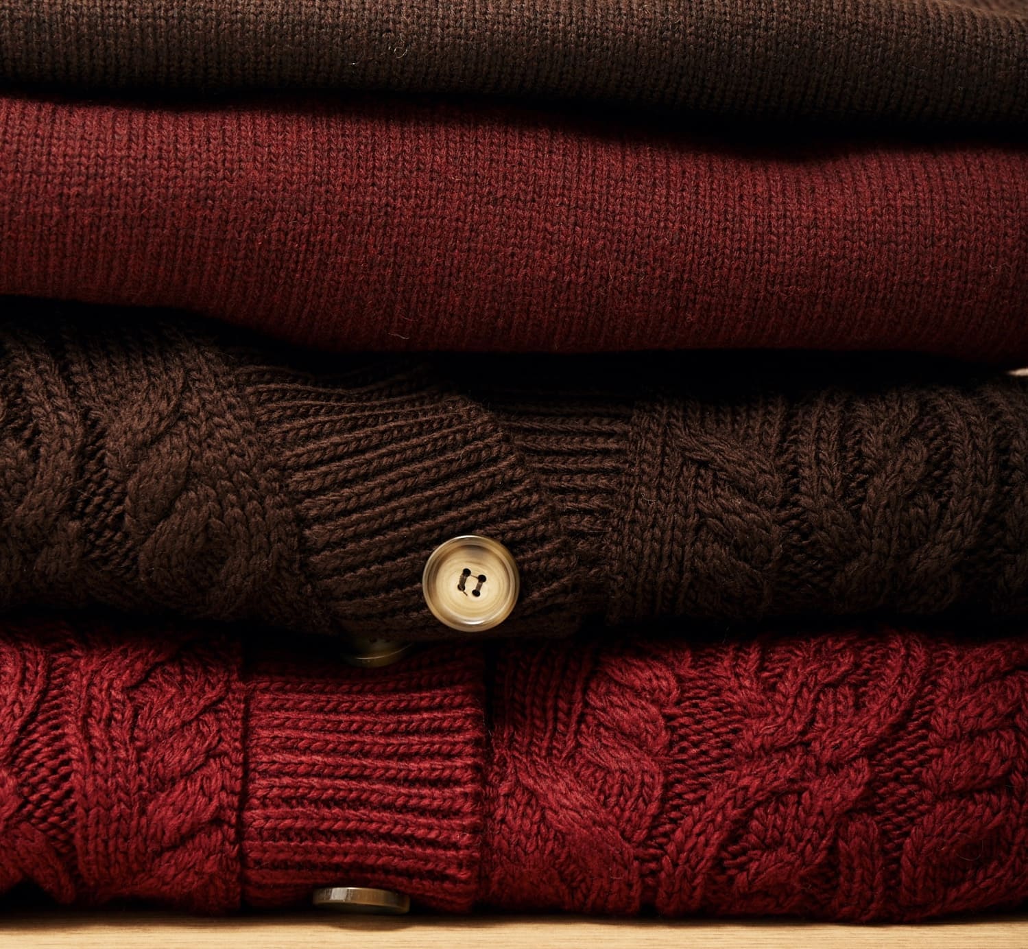 Зберігайте лише чисті речі. Складіть, а не підвішуйте, щоб уникнути розтягування. Для тривалого зберігання використовуйте вакуумні пакети або коробки з бавовняними мішечками й кедровими кульками. Восени легко повернути форму відпарюванням.